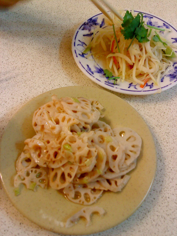 上面那盤是青木瓜絲,下面是藕片