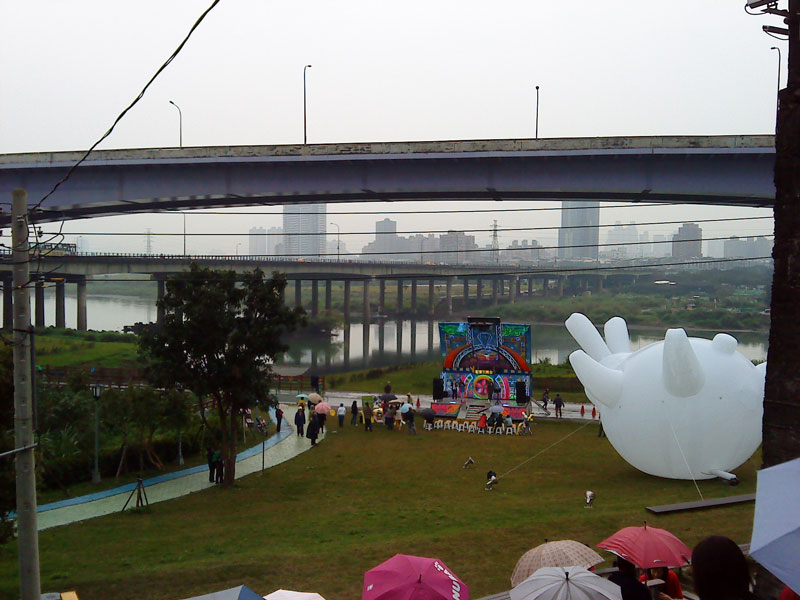 一直往下走到靠近永福橋下的大草坪,終於發現卡啦OK的來源~