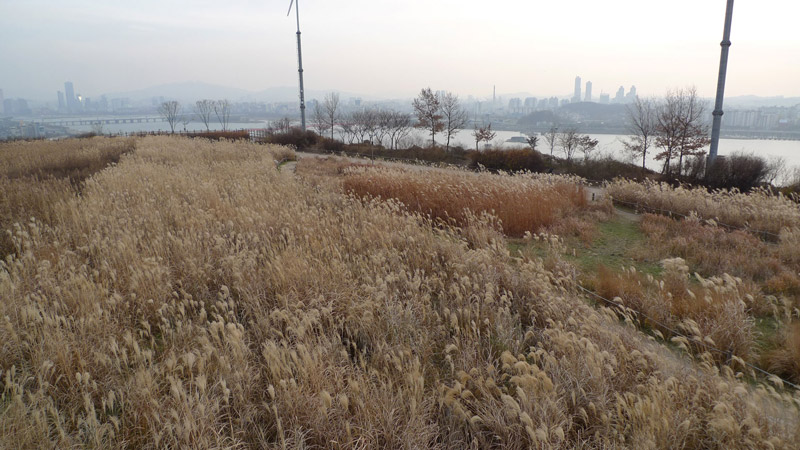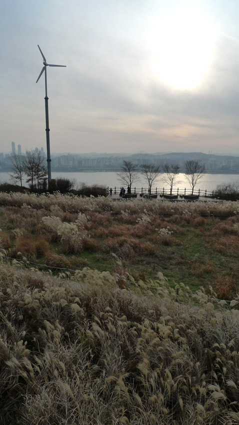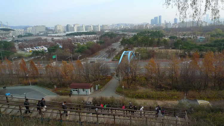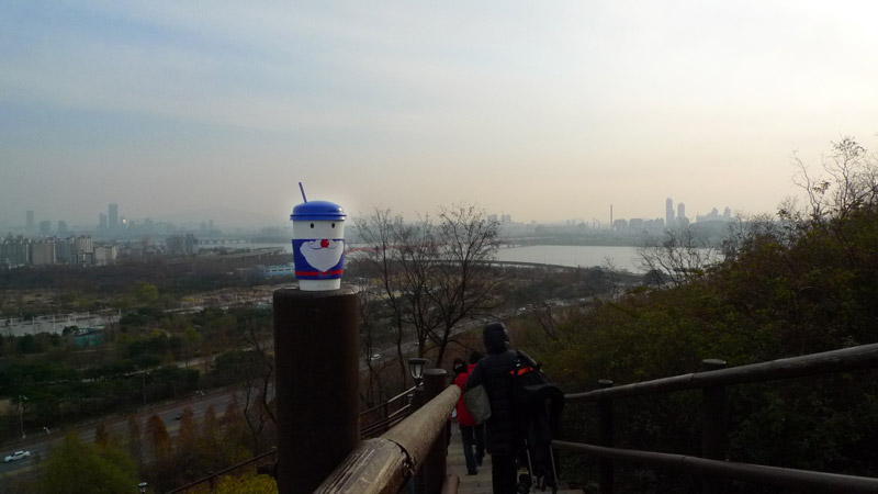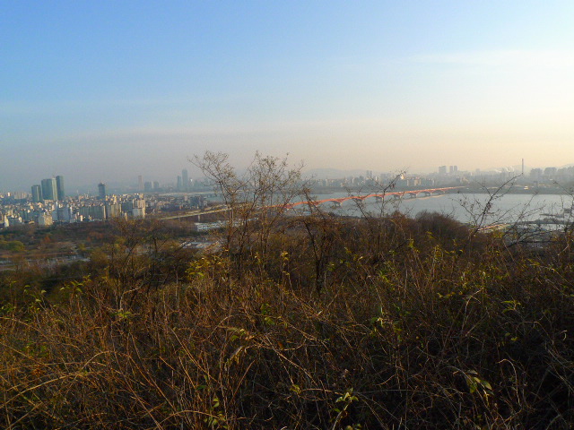 走到半路向下望,這時就能看到漢江了