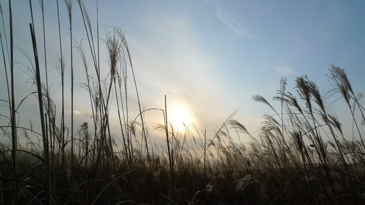 後來太陽露臉,一大片菅芒花全染了金黃色