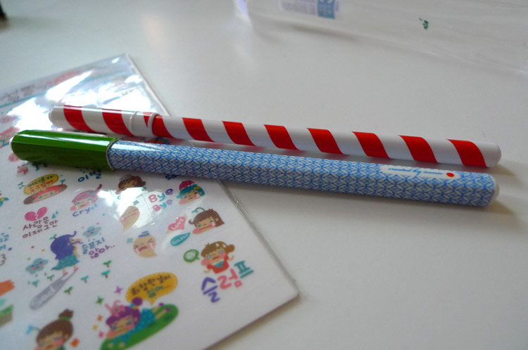 我愛這種圖案簡單、配色大氣的筆,都是黑色原子筆@明洞Kosney