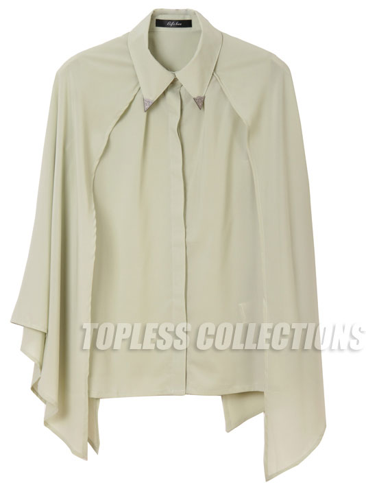 NO.23 金屬領斗篷式荷葉袖純色雪紡襯衫