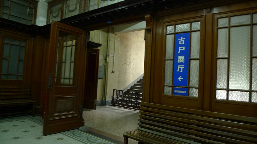 古屍展廳出口,後面跟了兩個年輕的上海妹紙遠遠看到古屍就尖叫...