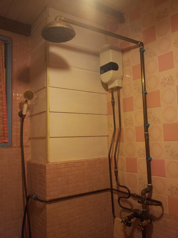 浴室的水管跟水龍頭也充滿工藝感,據說水管是旅館員工自己做的造型