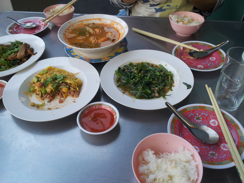 蝦仁蛋包、炒大腸、蝦醬空心菜、冬蔭功